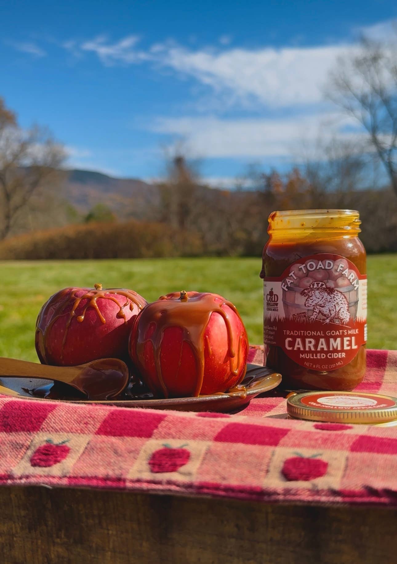 Read moreFat Toad Farm Mulled Cider goat's milk caramel is a rich, creamy, not-too-sweet caramel sauce with a slightly tangy finish. Mulled cider introduces bright, tangy apple notes infused with aromatic spices, adding a layer of depth and a hint of tartness. Each spoonful evokes the feeling of sipping a warm mug of spiced cider on a crisp autumn day. •DRIZZLE, DIP, DUNK, POUR, SWIRL & STIR – Add caramel flavor to your coffee, ice cream, apples, brownies, pretzels, cheese, fresh fruit, baked goods, cocktails, cocoa, tea, pie, cheesecake or fudge. •ALL NATURAL –Made from clean, simple ingredients. No preservatives. No corn syrup. No stabilizers. Gluten free. •TRADITIONAL CONFECTION – This delicious Mexican caramel, or cajeta, is similar to the South American cow’s milk version, dulce de leche. •FARM TO TABLE – Proudly made in Vermont in small batches with local goat's milk. Each batch is hand-stirred in copper kettles to velvety perfection. Makes a perfect foodie gift.