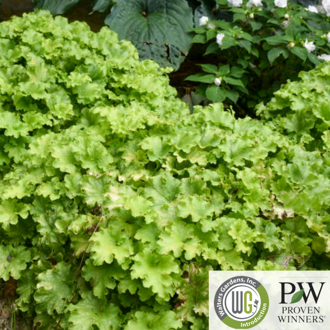 Read moreEvergreen. It's always apple season with this Heuchera! Watch with delight as this unique plant changes throughout the seasons. Newly emerging leaves have red veining that lightens with age. Chartreuse yellow leaves have wavy, rippled edges that will mature to apple green leaves later in the season. You'll appreciate its dense, full habit and good vigor.