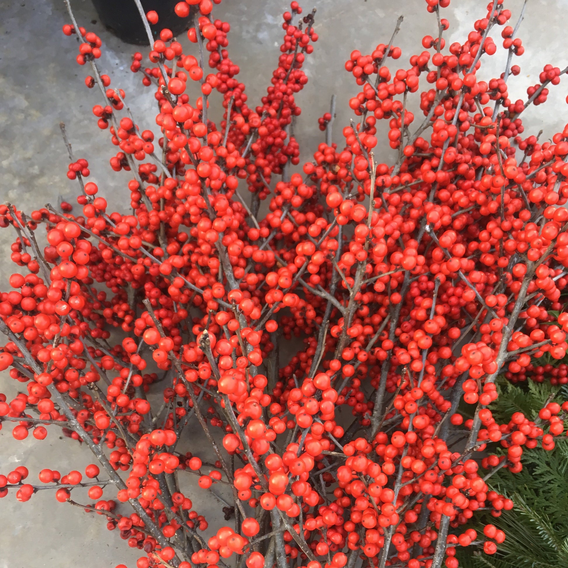 Female selection with darker green foliage than other species. Abundant, large, bright red fruit, persisting into winter. Will thrive and fruit in shade. 'Southern Gentleman' needed for pollination. Will not produce fruit without pollination.