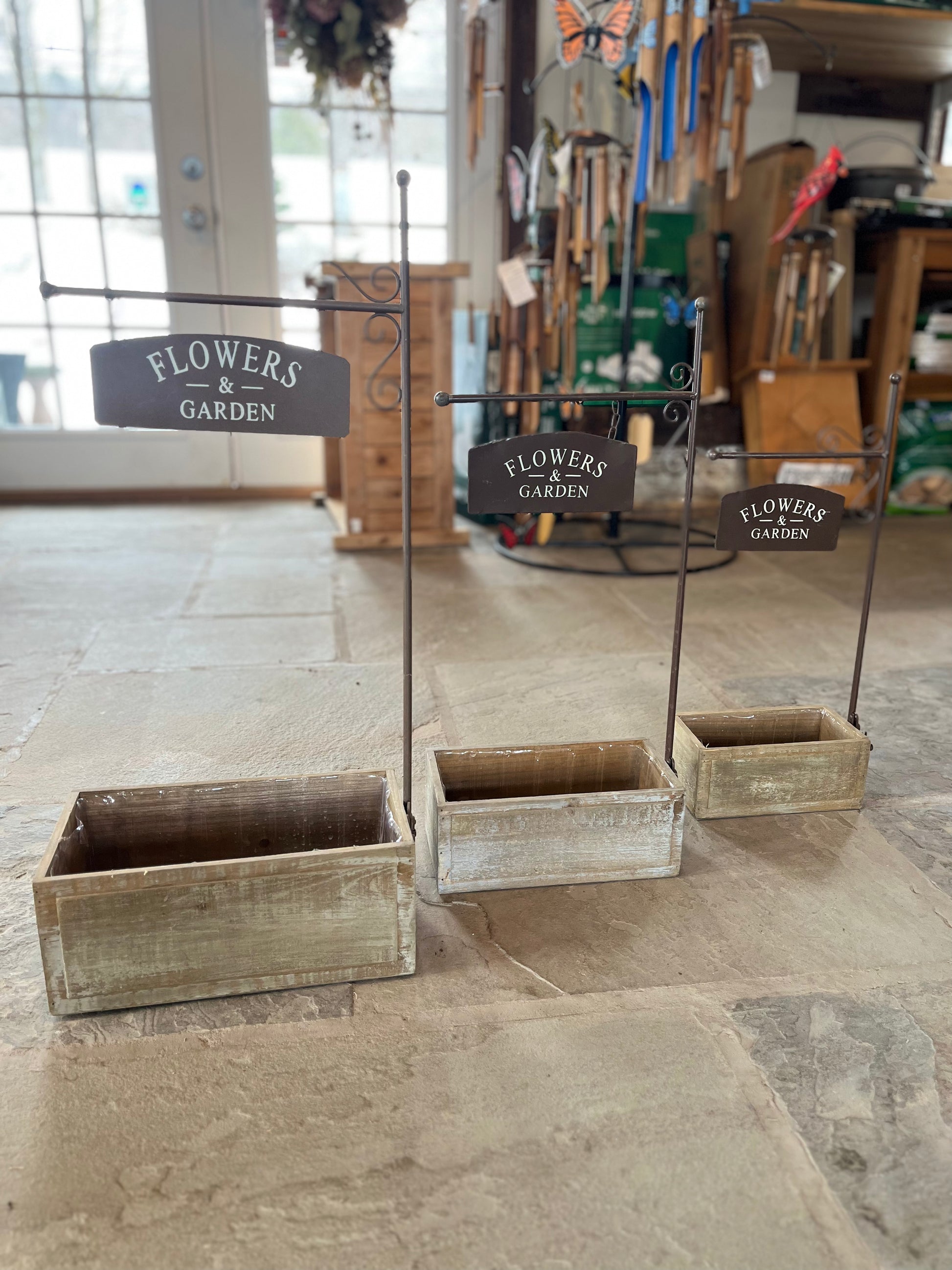 Wood Planter w/ Flowers & Garden Sign